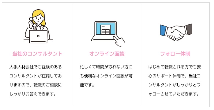 はじめて転職される方は不安な事など多いと思います。当社コンサルタントにいつでもご相談ください!